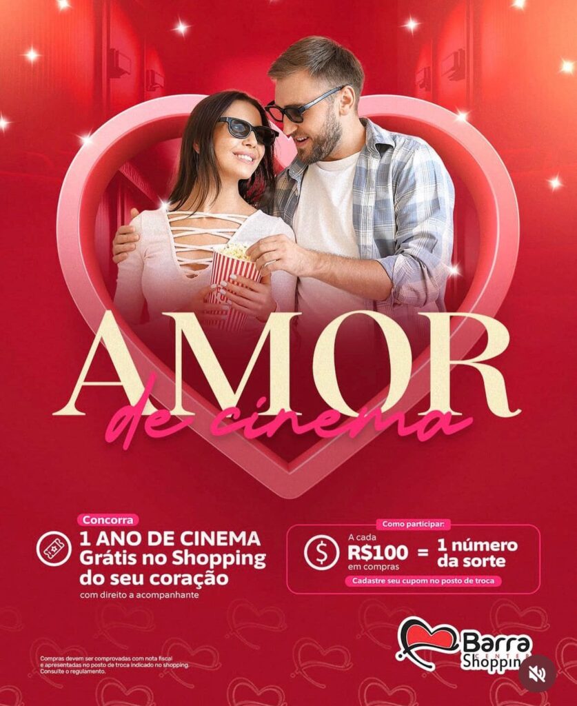 Em homenagem ao Dia dos Namorados, a cada R$100 em compras os clientes vão ganhar um número da sorte para concorrer a 1 ano de cinema grátis com acompanhante.